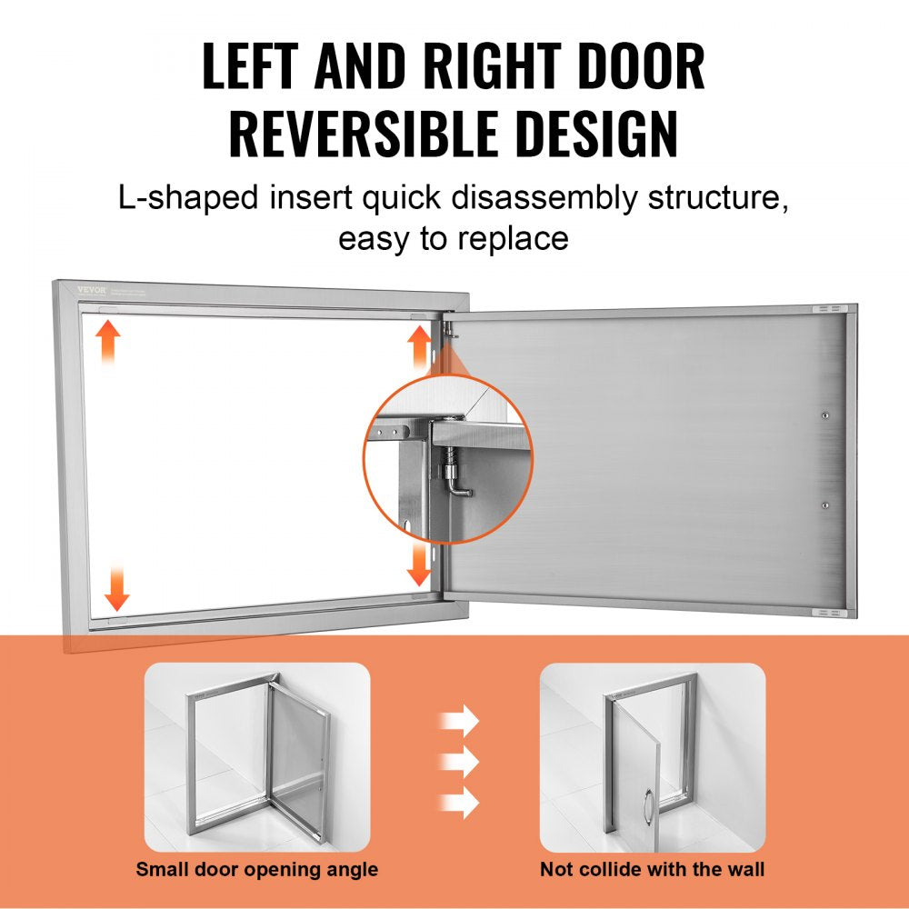 VEVOR bbq-toegangsdeur, roestvrij staal, inbouwmaat 24"x17", inclusief handgreep, schroeven, doek en schroevendraaier.