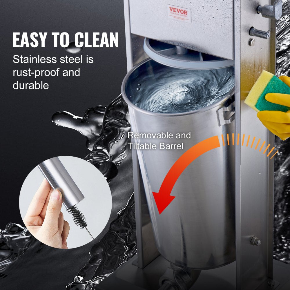 Met een inhoud van 15 L kunnen er meerdere worsten tegelijkertijd gemaakt worden. Dankzij het kantelbare vatontwerp kunnen ingrediënten direct worden ingeschonken en snel worstjes worden gemaakt.
