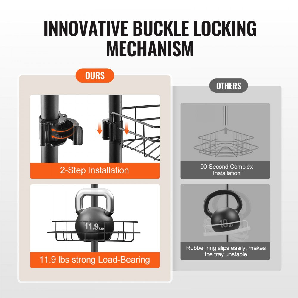 Het innovatieve ontwerp zorgt ervoor dat de plank stabiel staat en niet wegglijdt. Het hoge draagvermogen van 5,4 kg minimaliseert effectief het uitglijden of wiebelen tijdens het gebruik van de douchestang, waardoor gebruikers een veilige en stabiele gebruikerservaring krijgen.