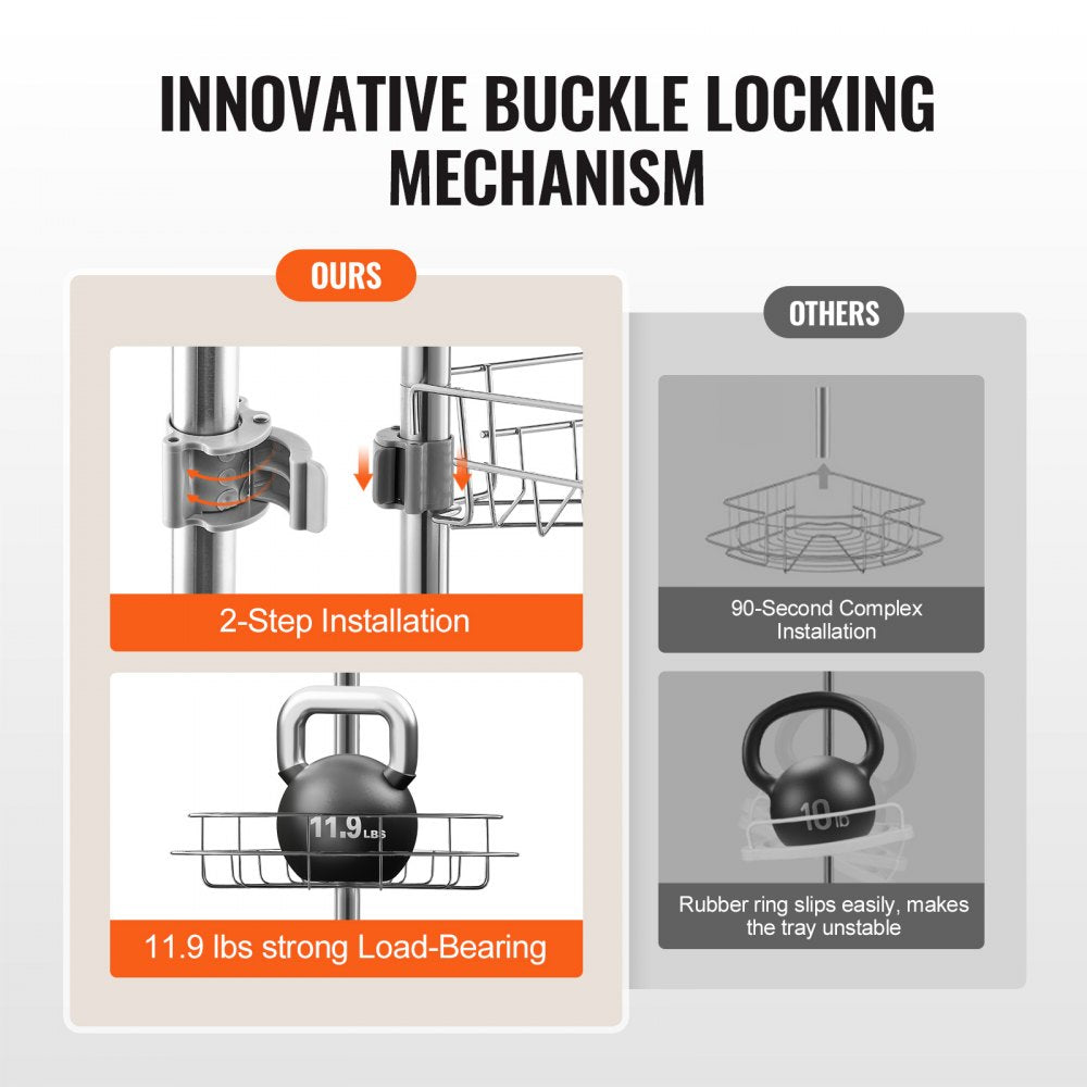 Het innovatieve ontwerp zorgt ervoor dat de plank stabiel staat en niet wegglijdt. Het hoge draagvermogen van 5,4 kg minimaliseert effectief het uitglijden of wiebelen tijdens het gebruik van de douchestang, waardoor gebruikers een veilige en stabiele gebruikerservaring krijgen.