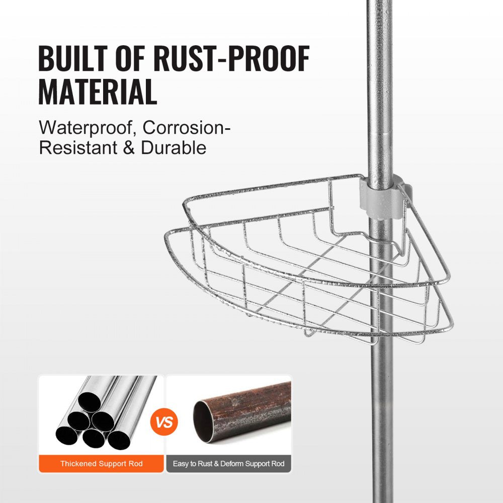 Het douchehoekplankje is gemaakt van hoogwaardig roestvrij staal, dat corrosiebestendig en stevig is. Zelfs als hij lange tijd in water wordt ondergedompeld of veelvuldig in contact komt met toiletartikelen, is hij nog steeds zo goed als nieuw.