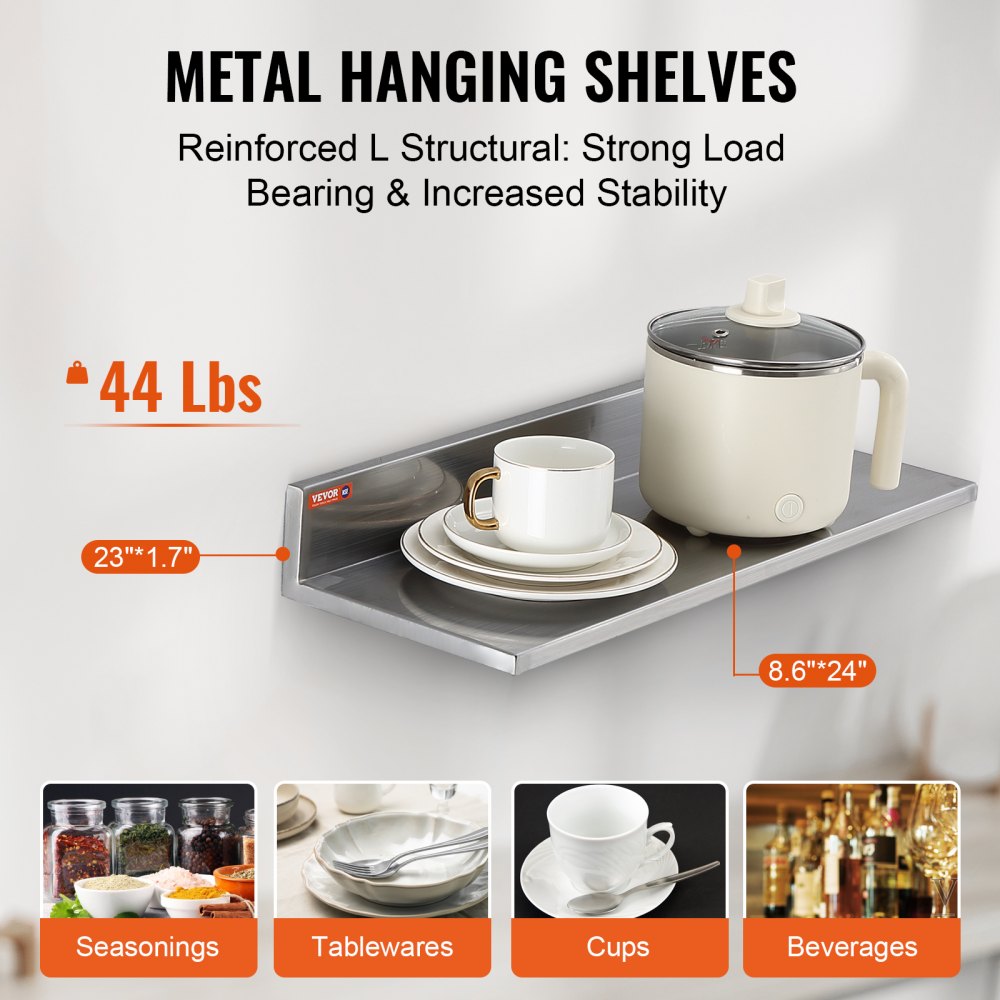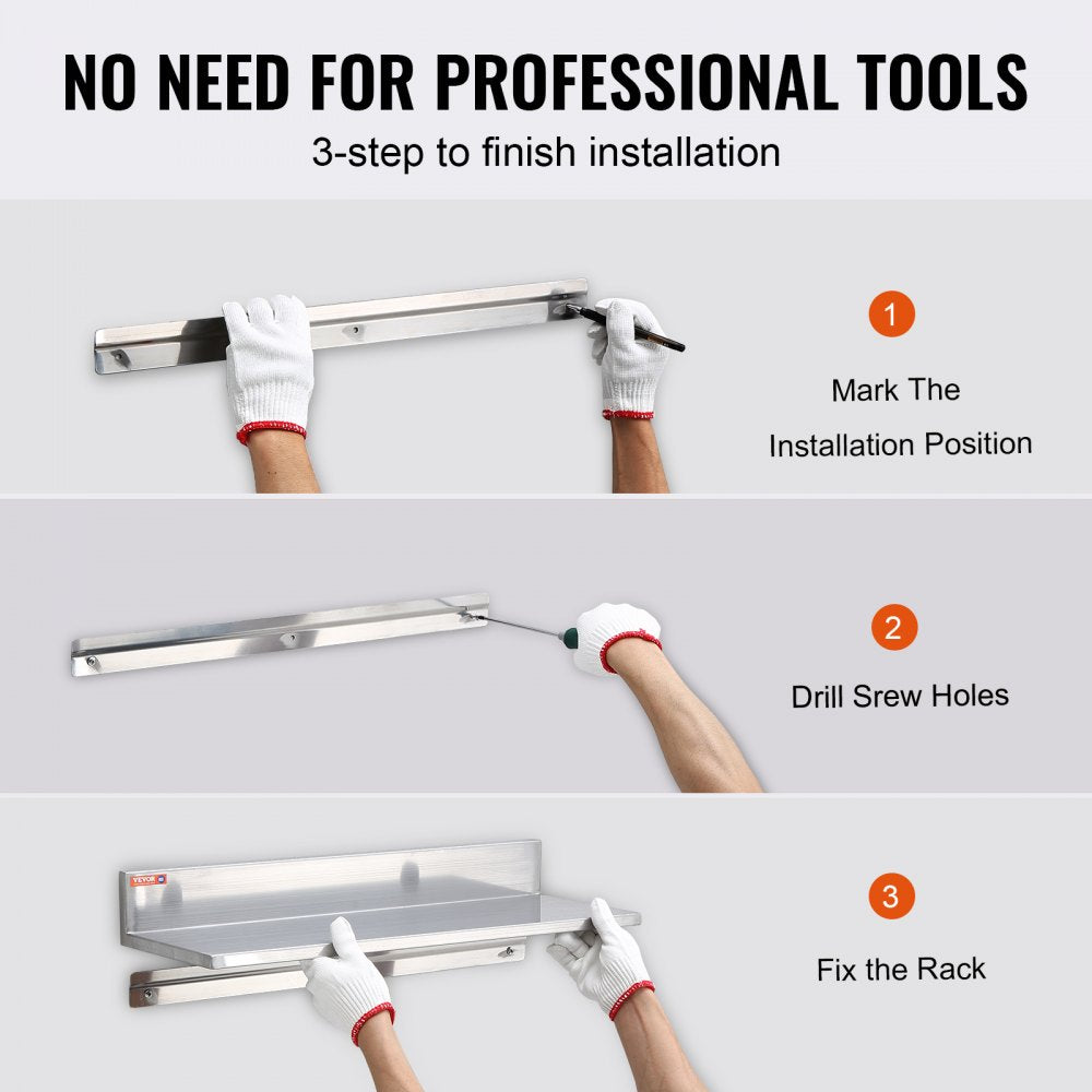VEVOR kruidenrek wandplank 2-delig, hangend keukenrek 610 x 218 x 85 mm, zwevende plank RVS 20 kg draagvermogen, plank wandplank kruidenrek geschikt voor keukens, restaurants, hotels etc.