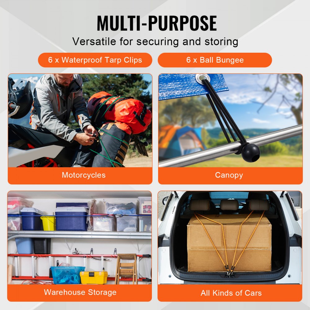 Met hun ultralange elastische bungeeriemen zijn ze perfect voor het opbergen van spullen in verschillende vormen en maten. Ze zijn essentieel voor gemakkelijke opslag en veilig transport.