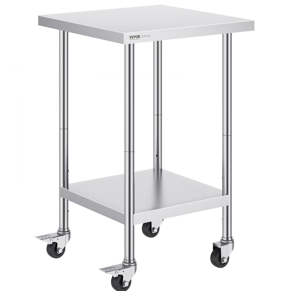 De werktafel is gemaakt van SUS201 roestvrij staal voor het tafelblad, de planken en de poten, wat een hogere roestbestendigheid en een aantrekkelijkere afwerking biedt in vergelijking met concurrerende producten gemaakt van 430 roestvrij staal of gegalvaniseerd materiaal.