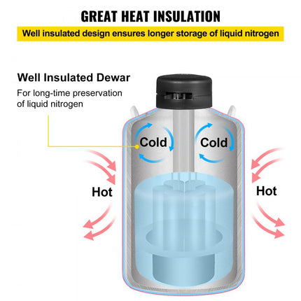 Normale bewaartijd: 175 dagen (Bij veelvuldig gebruik en het openen van het deksel zal vloeibare stikstof verdampen en de bewaartijd verkorten.)