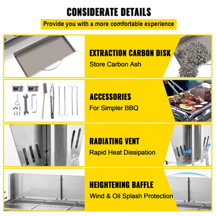 Het grilloppervlak is 34,6"/88 cm lang en 17"/44 cm breed-een geweldige braadmachine voor commercieel gebruik, thuis en sociale barbecuefeestjes. De beste keuze voor jou en je gezin.