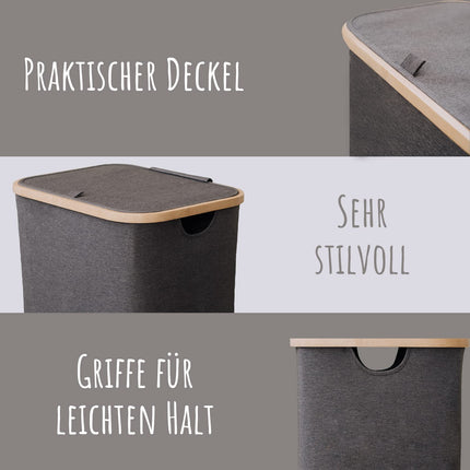 Derins - Wäschekorb mit Deckel Groß - XL 100 Liter - Wäschekorb Holz Bambus - Wäschesammler Grau mit Griffen - Grey Laundry Basket - Laundry Hamper with Lid