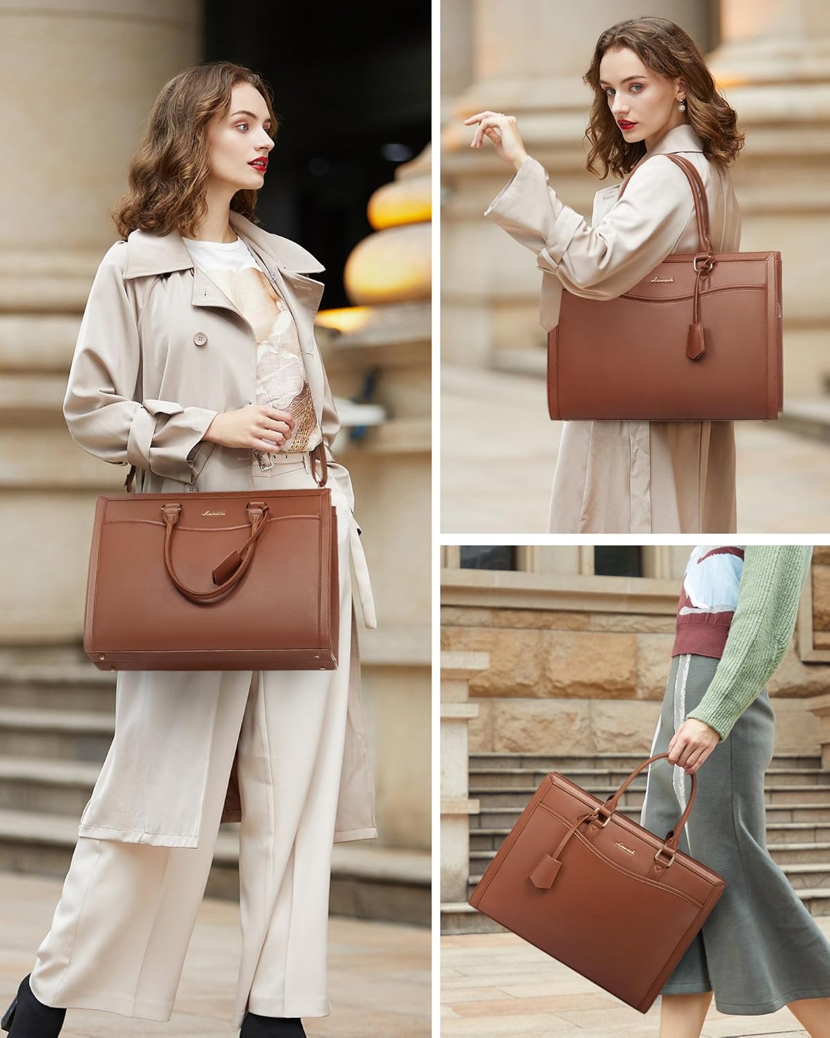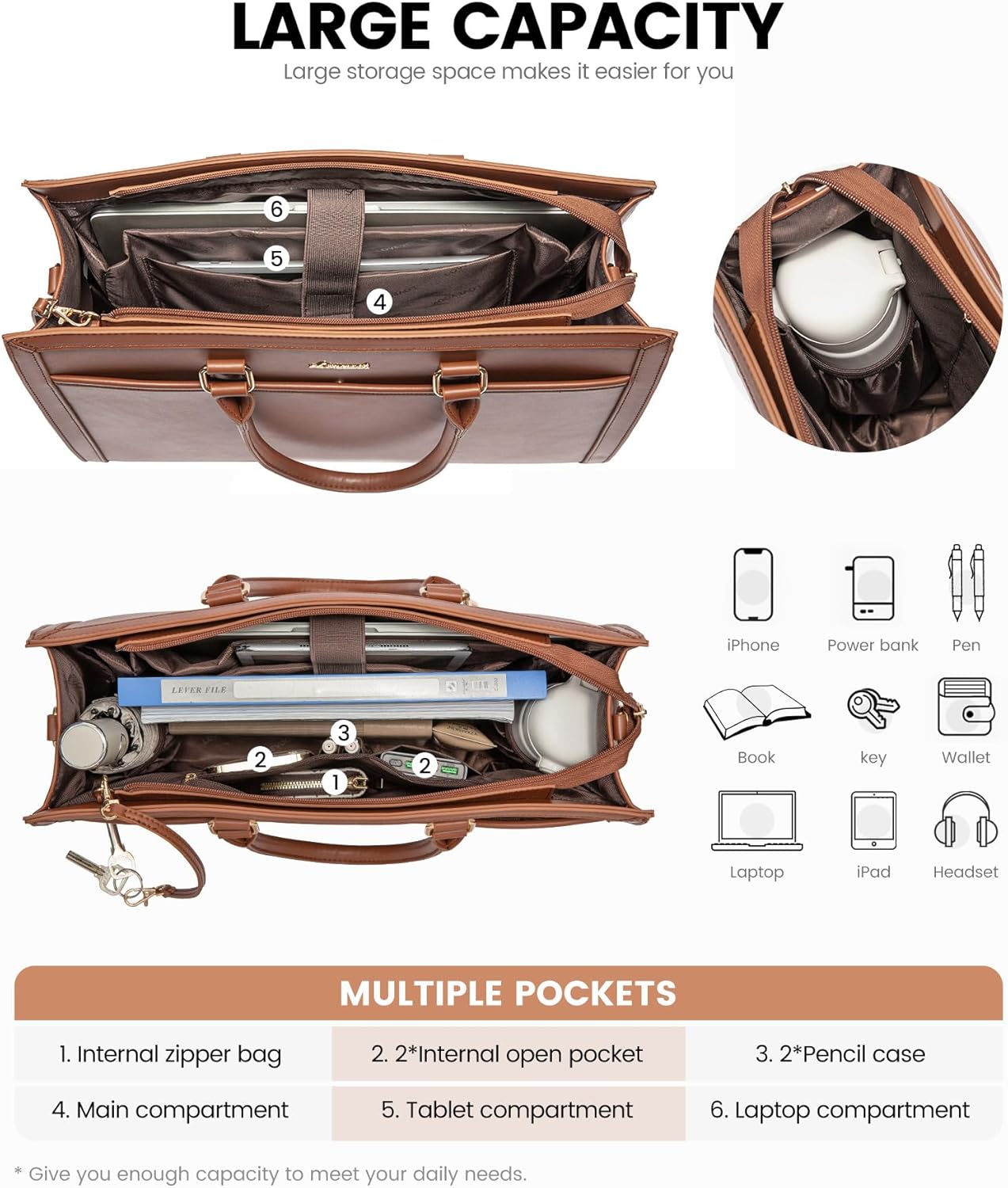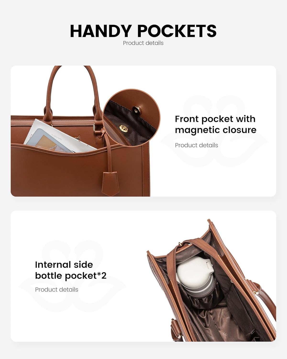 Grote handtas voor dames en meerdere vakken: Eenvoudig te organiseren met een grote tas (41,91 x 14,73 x 31,75 cm), een kleine tas (20,32 x 12,7 cm), een verstelbare schouderriem (88,9-121,9 cm) en een licht design (1,28 kg). ). Gevoerd laptopvak: Geschikt voor laptops tot 15,6 inch en biedt extra bescherming.