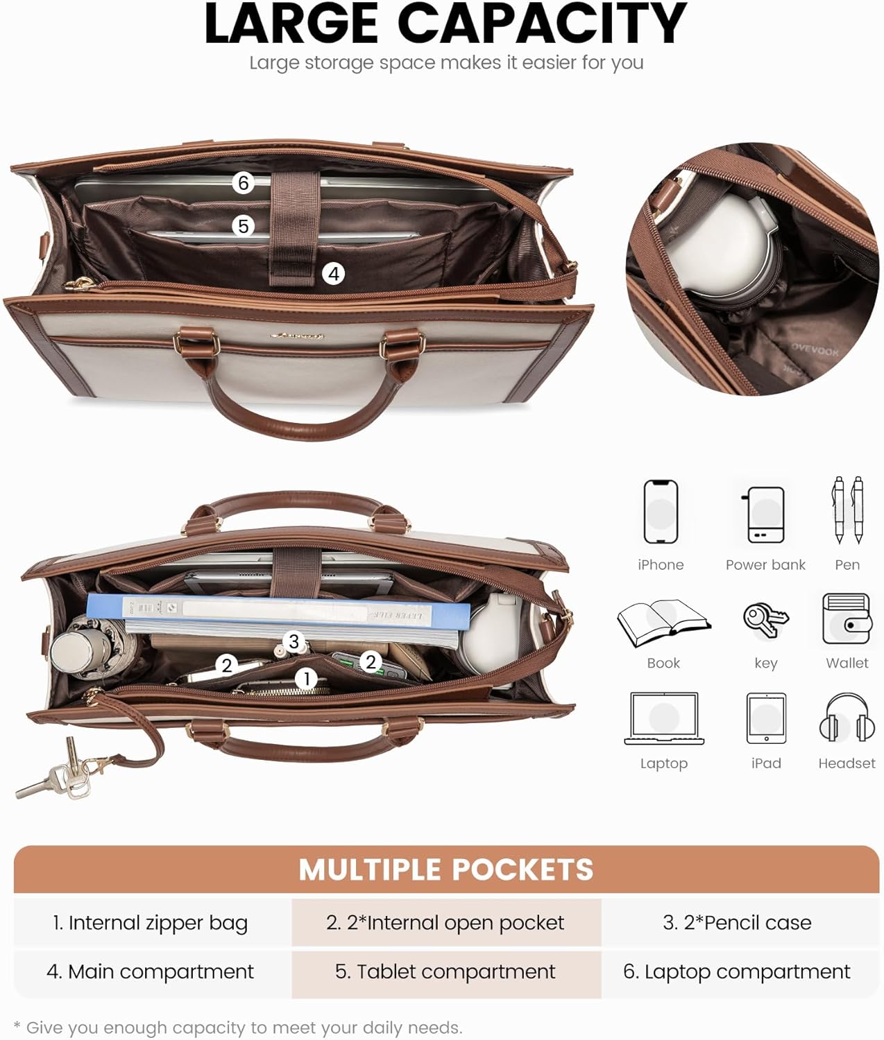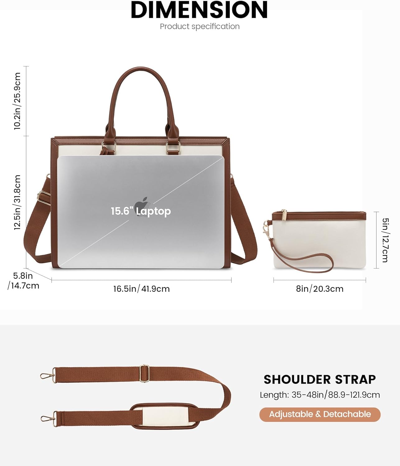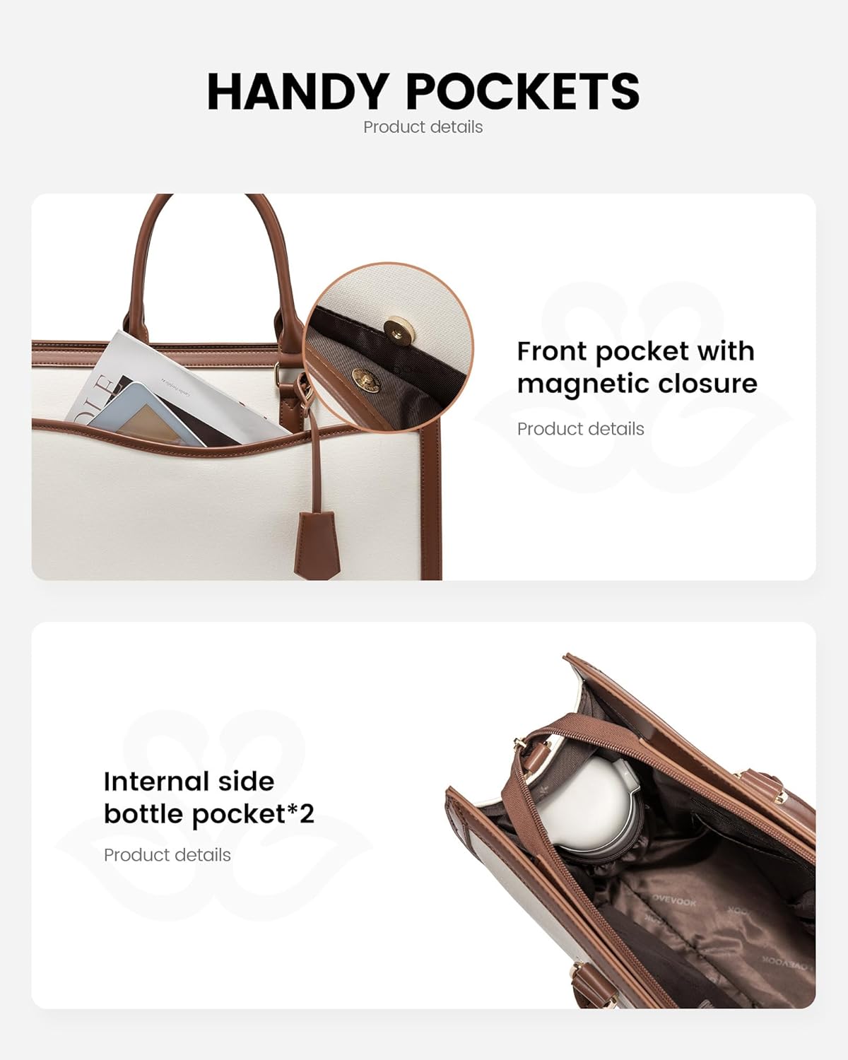 Grote handtas voor dames en meerdere vakken: Eenvoudig te organiseren met een grote tas (41,91 x 14,73 x 31,75 cm), een kleine tas (20,32 x 12,7 cm), een verstelbare schouderriem (88,9-121,9 cm) en een licht design (1,14 kg). ). Gevoerd laptopvak: Geschikt voor laptops tot 15,6 inch en biedt extra bescherming.