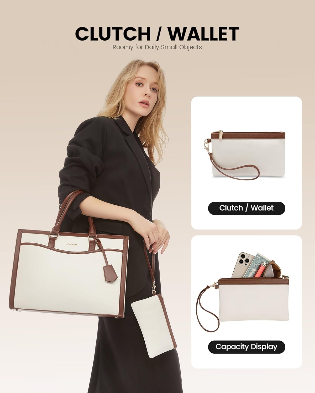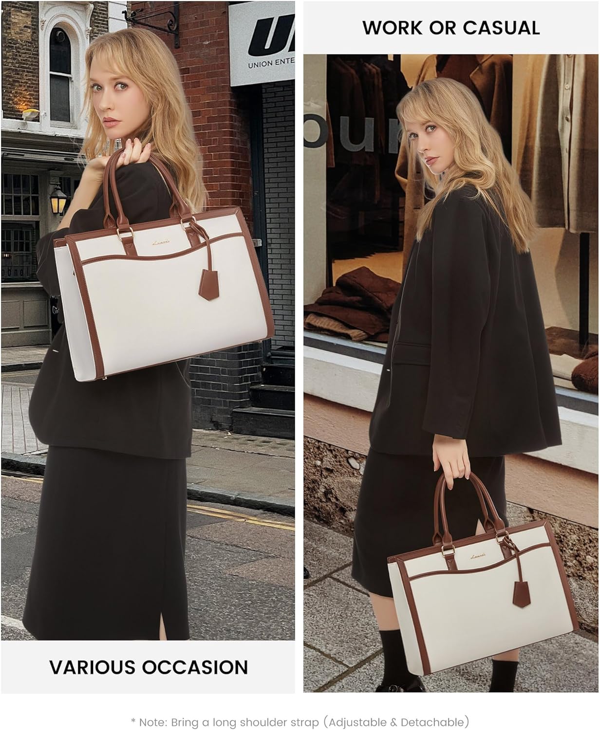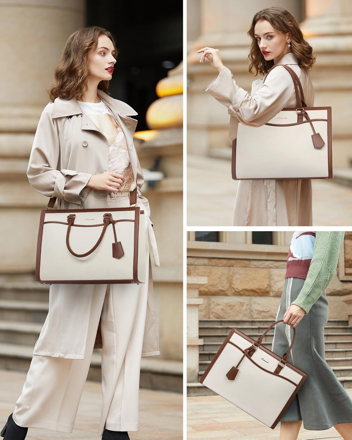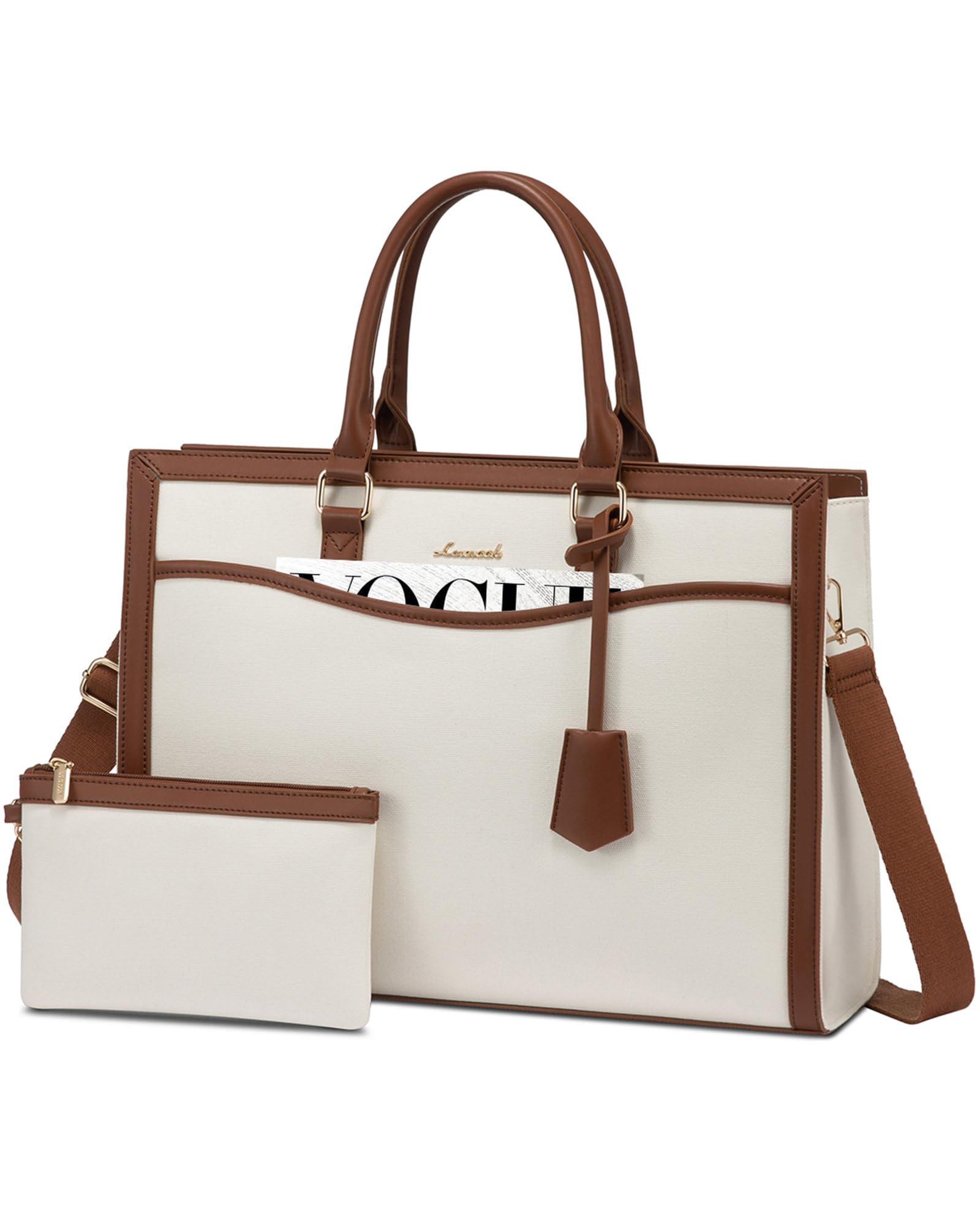 Grote handtas voor dames en meerdere vakken: Eenvoudig te organiseren met een grote tas (41,91 x 14,73 x 31,75 cm), een kleine tas (20,32 x 12,7 cm), een verstelbare schouderriem (88,9-121,9 cm) en een licht design (1,14 kg). ). Gevoerd laptopvak: Geschikt voor laptops tot 15,6 inch en biedt extra bescherming.