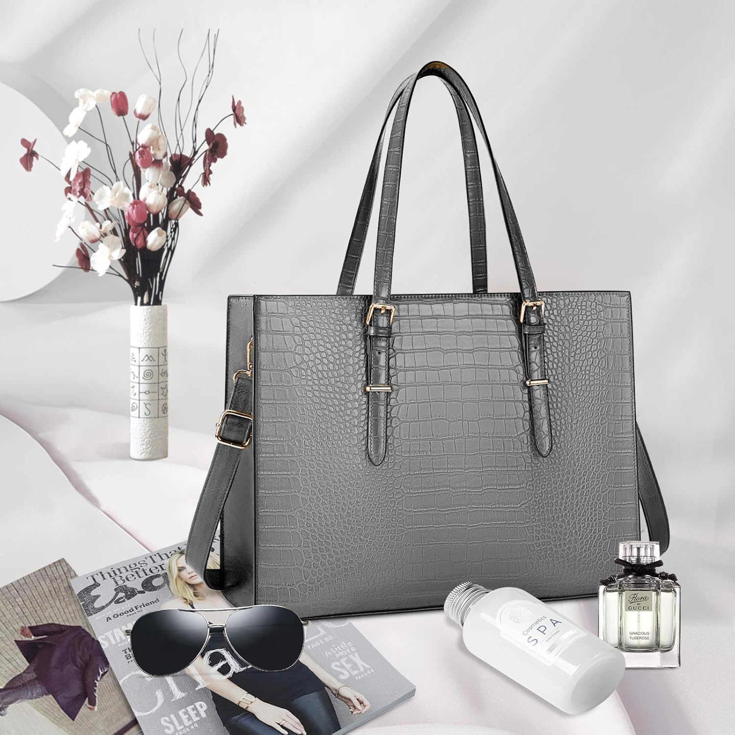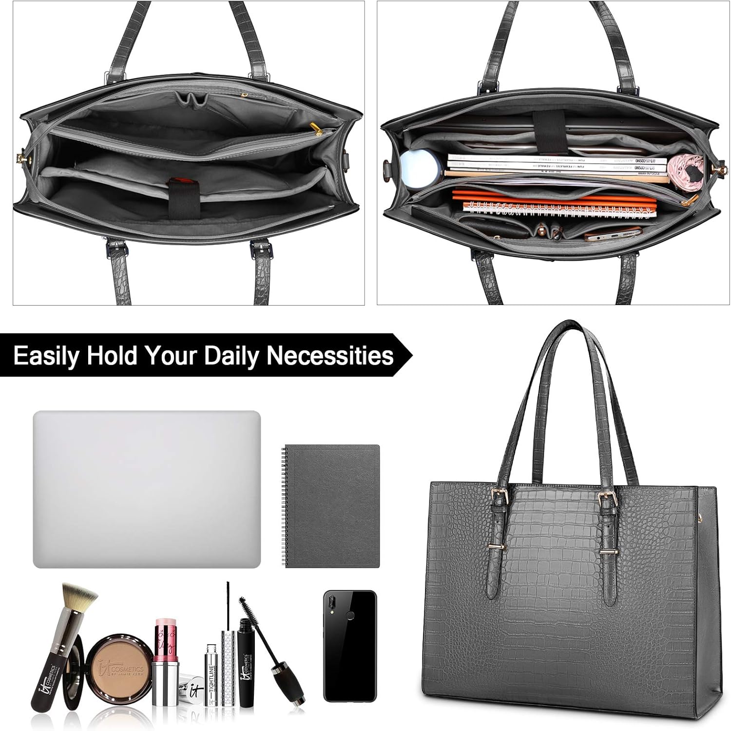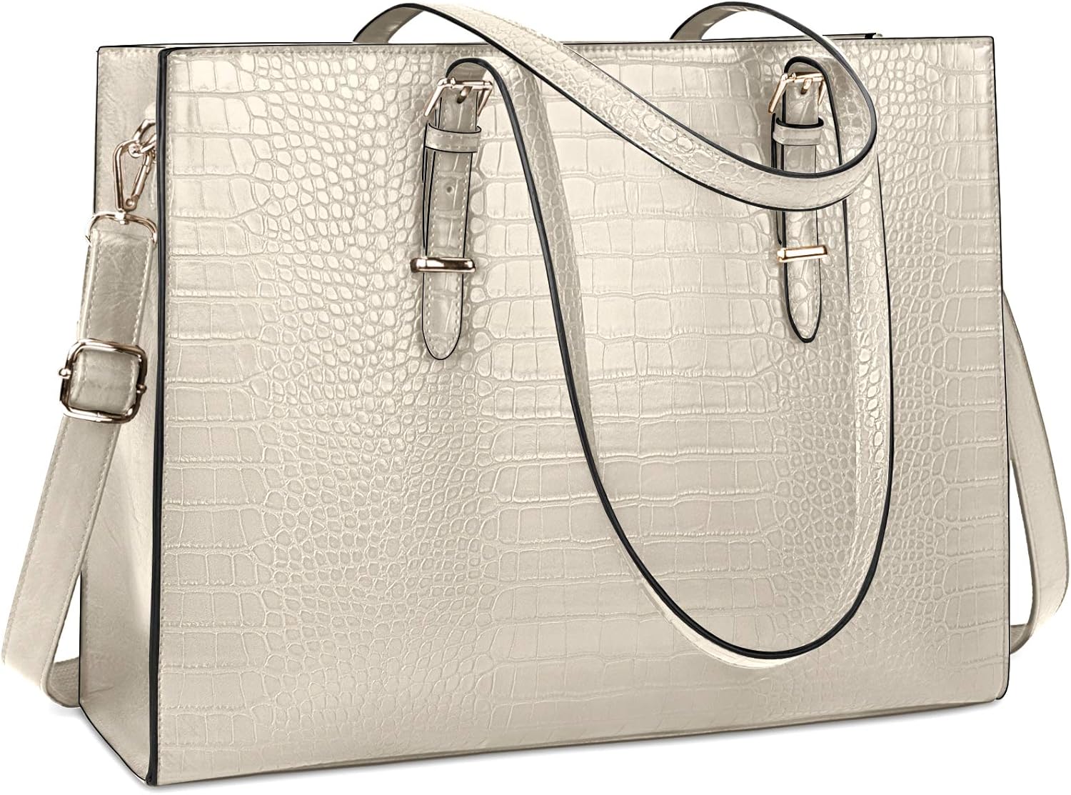 Duurzame laptoptassen voor dames: De Lubardy handtas is gemaakt van kunstkrokodillenleder met een polyester voering, waterdicht en krasbestendig. Stevige handgreep aan de bovenkant en professioneel gevoerd vak, houd je laptop en benodigdheden veilig. 4 klinknagels aan de onderkant kunnen de tas effectief beschermen wanneer hij op de grond staat.