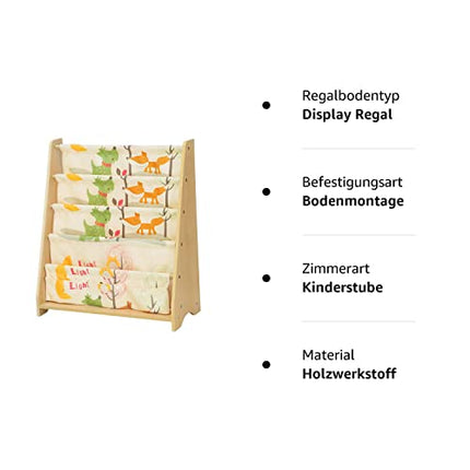 - DEKORATIV: Das hübsche Bücherregal mit seinen leuchtenden Farben zieht die Kinder an. Tiere, Bäume, Vögel u.a. bringen Begeisterung in das Leben und Denken von Kindern. 3 kleine Taschen am Boden bieten zusätzlichen Stauraum für Schulsachen