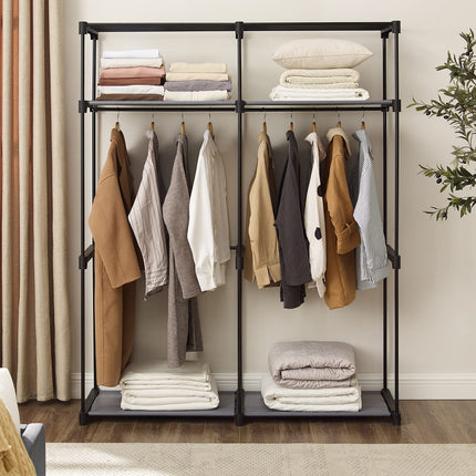 • Zo kan de volgende shoppingtour komen! Hang je nieuw gekochte kleding netjes op de 2 kledingstangen en leg je lievelingszakken op de planken. Alles binnen handbereik in deze garderobe – zo wordt de keuze van een outfit 's ochtends weer leuk.