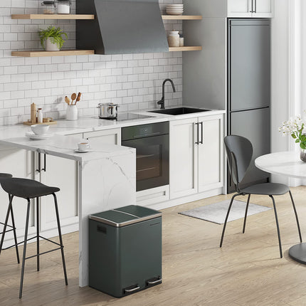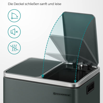- [Fußpedale & Softclose-Deckel] Die Deckel dieses 2-Fächer-Mülleimers lassen sich mit einem Fußtritt öffnen, ohne dass Sie den Mülleimer mit der Hand berühren müssen. Außerdem schließen die Deckel leise und sanft und klappen nicht abrupt zu