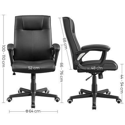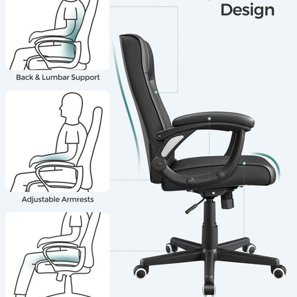 Songmics OB932B Bureaustoel van Pu, Sluitvast, Zwart