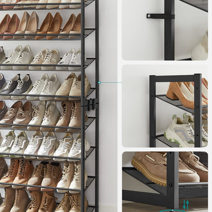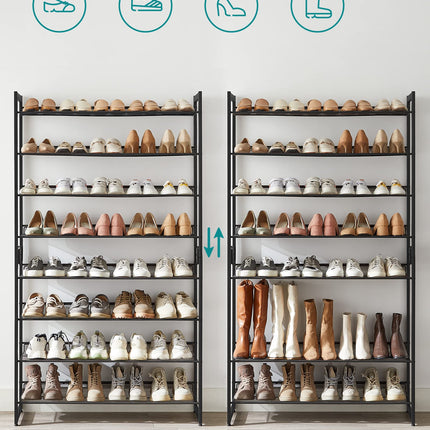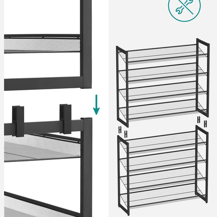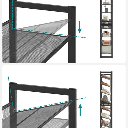 SONGMICS Schoenenrek met 8 niveaus, set van 2 stapelbare 4-traps schoenenorganizers, schoenenopslag van metaal, met verstelbare roosterplanken, plat of schuin monteerbaar, zwart LMR08B