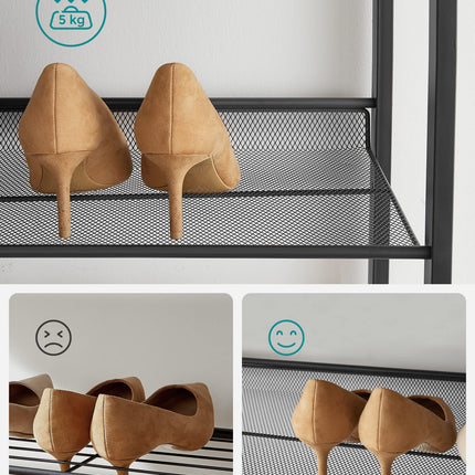 • Alle schoenen passen in het rek: we kijken naar de feiten - de meesten van ons hebben meer dan een paar schoenen en sommige hebben zelfs grote hoeveelheden. Hier komt deze schoenenstandaard. Met een afstand van 20 cm tussen de planken biedt hij genoeg ruimte voor gymschoenen, pumps en zelfs hoge laarzen