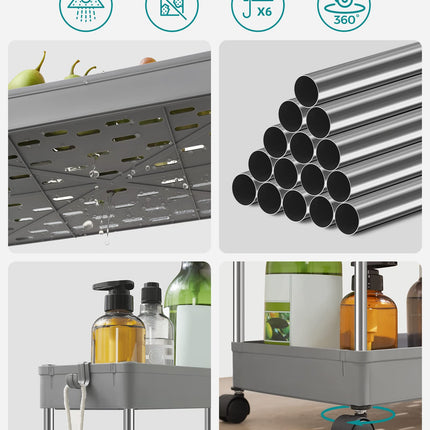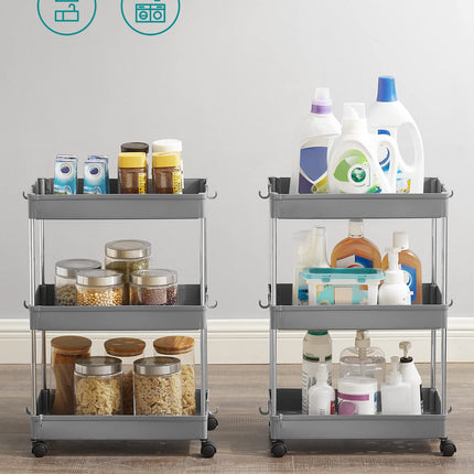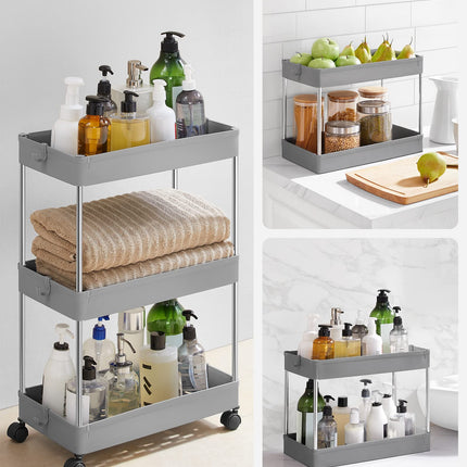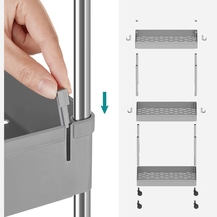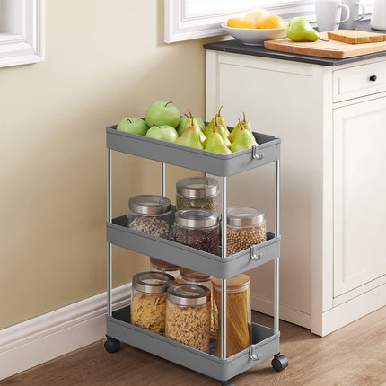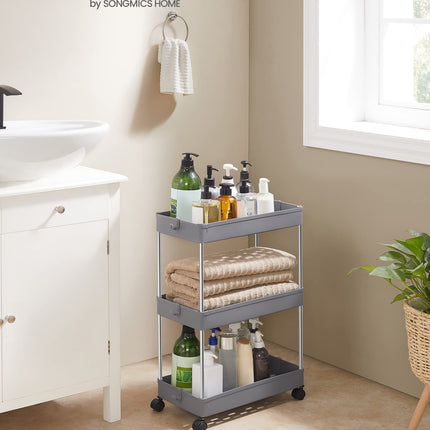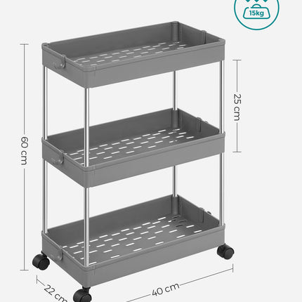 SONGMICS trolley met 3 niveaus, keukentrolley, nisplank op wielen, ruimtebesparende keukenplank, badkamerplank, voor de badkamer, woonkamer, kantoor, 40 x 22 x 60 cm, grijs KSC009G01