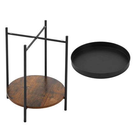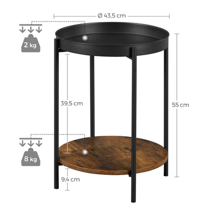 VASAGLE Bijzettafel, 2 niveaus, salontafel ronde, 43,5 x 55 cm, uitneembare kom, metalen frame, voor woonkamer en slaapkamer, vintage bruin-zwart LET221B01