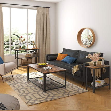 VASAGLE bijzettafel, nachtkastje, banktafel met tralielegger, voor woonkamer, slaapkamer, salontafel in industrieel ontwerp, vintage bruin-zwart LET31BX