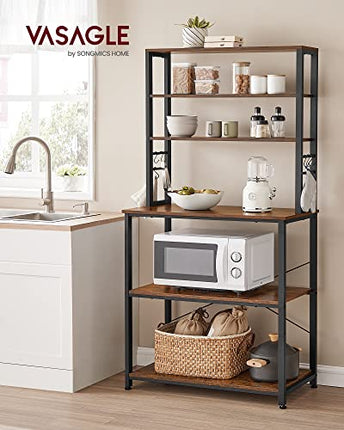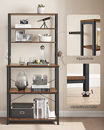 Derins Küchenregal, Standregal für Küche, Mikrowellen-Regal, stehend, 6 Regalebenen und 6 Haken, für Mikrowelle, Stahlrahmen, Industrie-Design, 40 x 80 x 167 cm, vintagebraun-schwarz KKS019B01