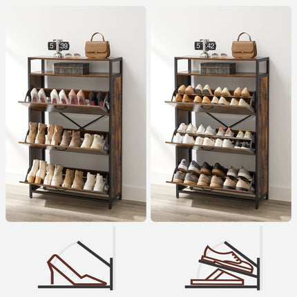 VASAGLE schoenenkast met 3 kleppen, schoenenrek, schoenenkantelaar, schoenenkast met 3 vakken, schoenenplanken, in de gang, voor 15-24 paar schoenen, ruimtebesparend, 80 x 30 x 130 cm, vintage bruin-zwart LBS802B01