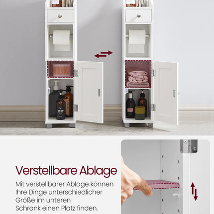 VASAGLE Toiletkast, badkamermeubel, badkamermeubel, met verstelbare plank, waterdichte poten, voor kleine ruimtes, wit BBC846P31