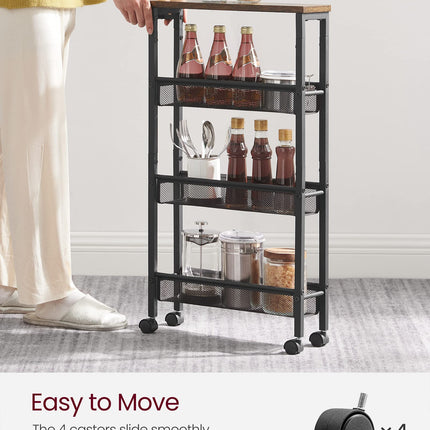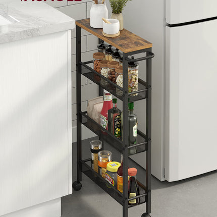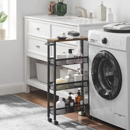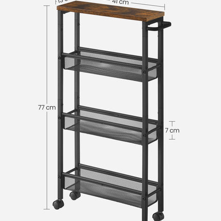 - [Perfect voor kleine ruimtes] Deze smalle rolwagen (diepte 13 cm) past perfect in smalle nissen in de keuken, badkamer, thuiskantoor, woonkamer of slaapkamer. Met deze niche trolley kunt u de verticale ruimte optimaal benutten en de opslagruimte maximaliseren