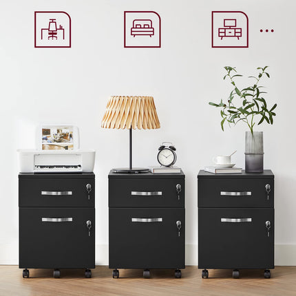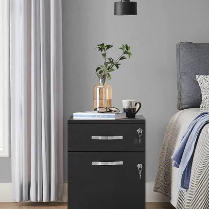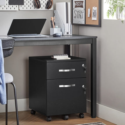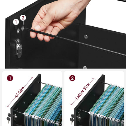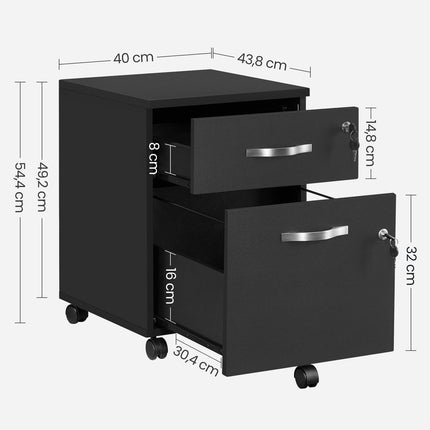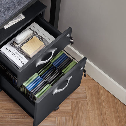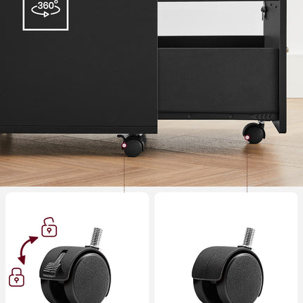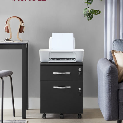 VASAGLE verrijdbaar onderstel, vergrendelbaar, archiefkast met 2 laden, 5 wielen en verstelbaar hangdossier, voor documenten in A4- en letterformaat, thuiskantoor, zwarte LCD22BV1