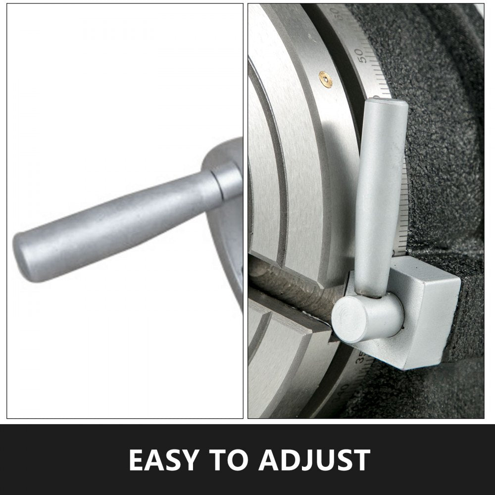 De wijzerplaat is in totaal in 360 graden verdeeld. De grip is 4 graden per draai. De minimale schaal kan tot 10 seconden nauwkeurig zijn.
