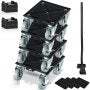• VEELZIJDIGE ALLES-IN-ÉÉN SET: Deze meubeldollyset bevat 4 meubeldolly's, 4 antislipkussens, 1 verlengde krik en 4 hefkussens. Om te gebruiken, plaatst u de lift eenvoudig onder het zware object en tilt u de dolly op onder elke hoek van het object. Compact en draagbaar, de VEVOR meubelwagenset kan gemakkelijk worden opgeborgen zonder al te veel ruimte in te nemen. Neem hem gewoon mee naar huis, naar kantoor of naar de werkplaats!