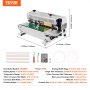 VEVOR bandsealer met semi-automatische transportband, sealbreedte 6-12 mm en snelheid 0-16 m/min.