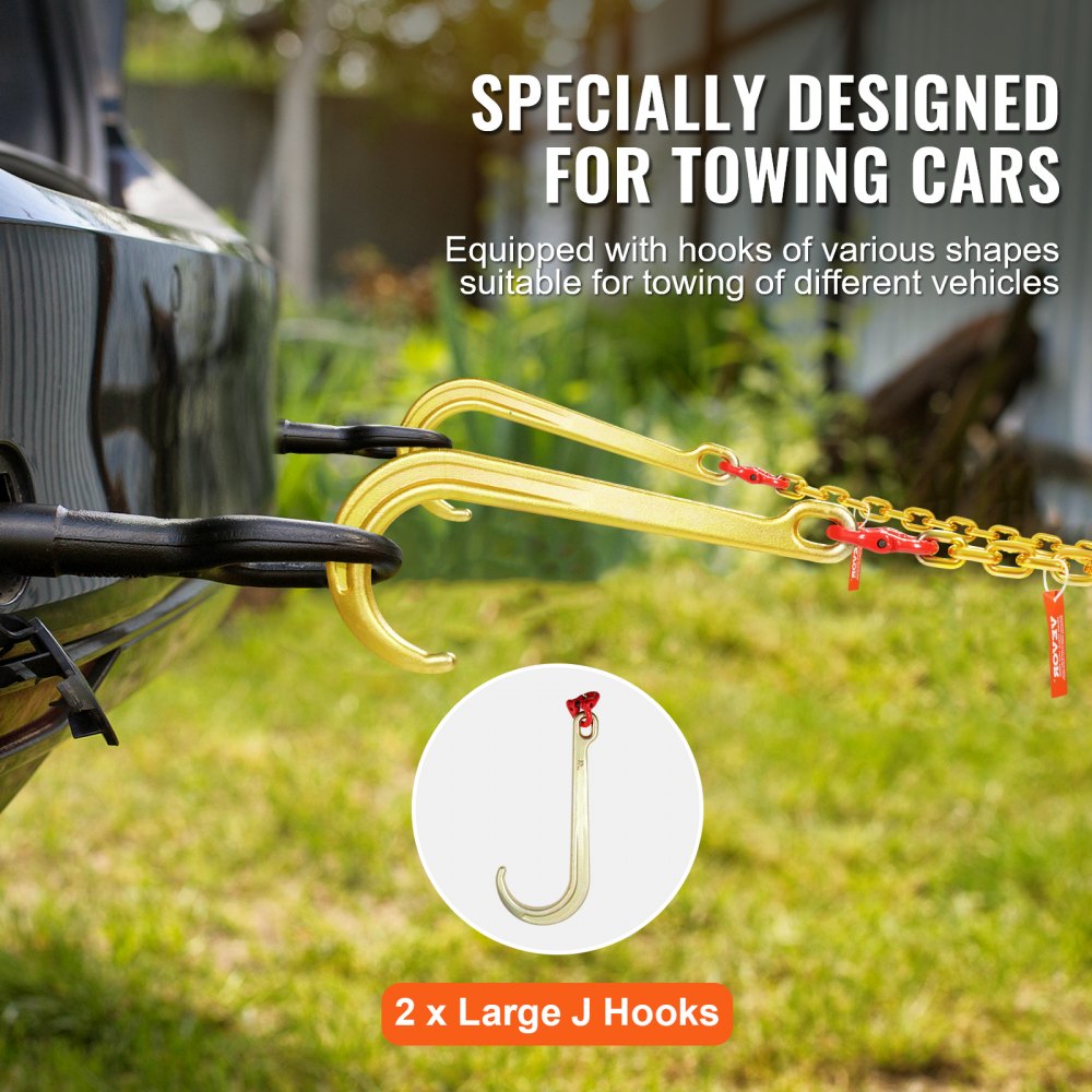 VEVOR, uw exclusieve gereedschapsexpert. Deze V-teugelketting is gemaakt van hoogwaardig staal met een algehele sterkte van klasse 80. Ook is hij voorzien van haken die geschikt zijn voor verschillende soorten voertuigen.