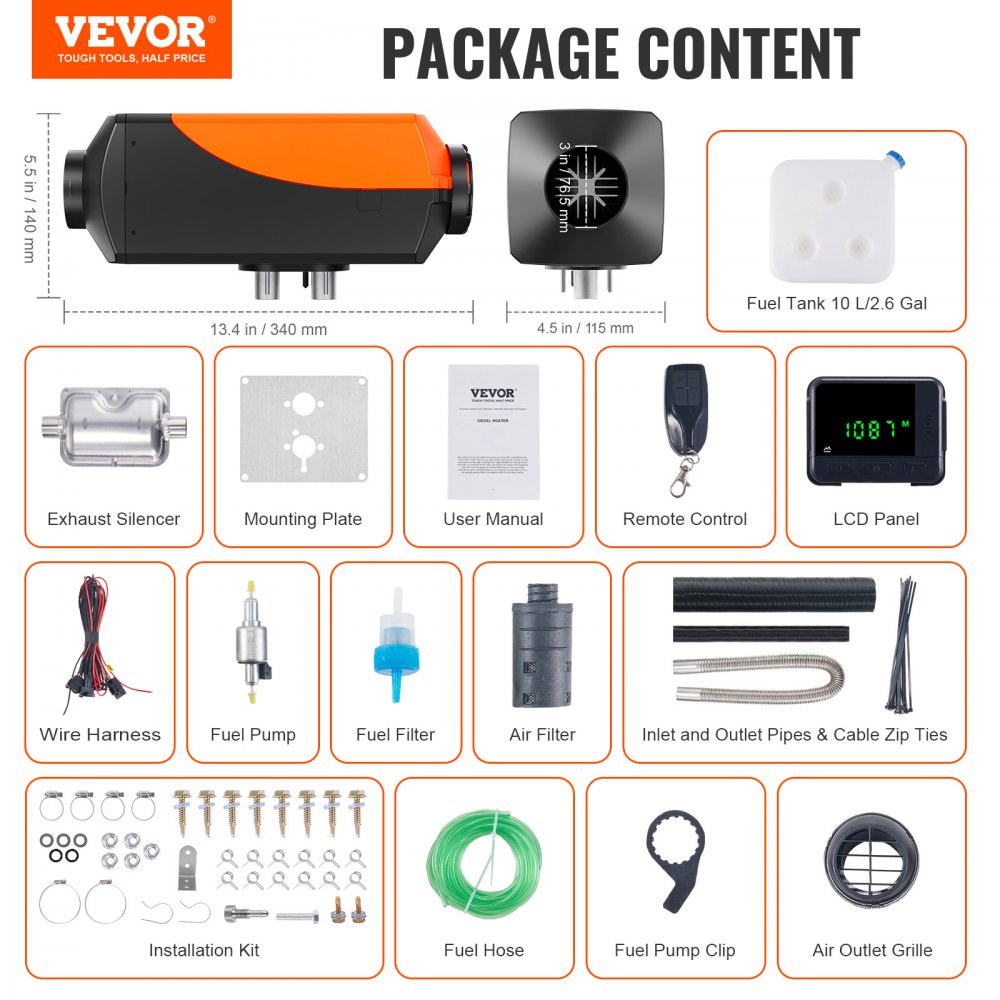 De VEVOR dieselkachel is de perfecte oplossing voor uw auto, camper, vrachtwagen die tegen koud weer vecht. Het levert snel een constante stroom warme lucht, elimineert de koude atmosfeer in uw voertuig en zorgt voor een comfortabele rit.