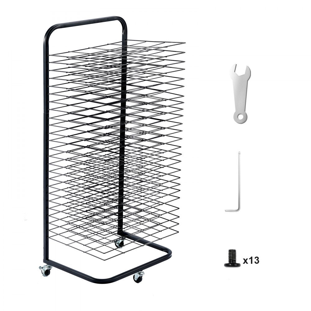 Alle 25 planken zijn verstelbaar om aan verschillende droogbehoeften te voldoen. Ze zijn gemakkelijk te plaatsen of te verwijderen om vervuiling van natte kunstwerken te voorkomen. De gepoedercoate metalen constructie zorgt ervoor dat elke hoek glad is.
