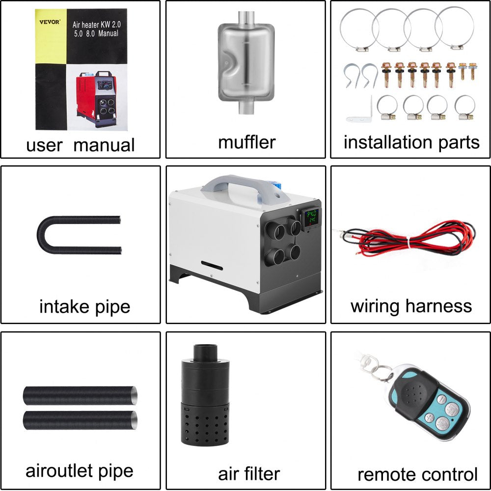 VEVOR Auto Diesel Luchtverwarmer Luchtverwarmers Diesel Verwarmer Standkachel Diesel Diesel HeaterWit 5KW Lcd