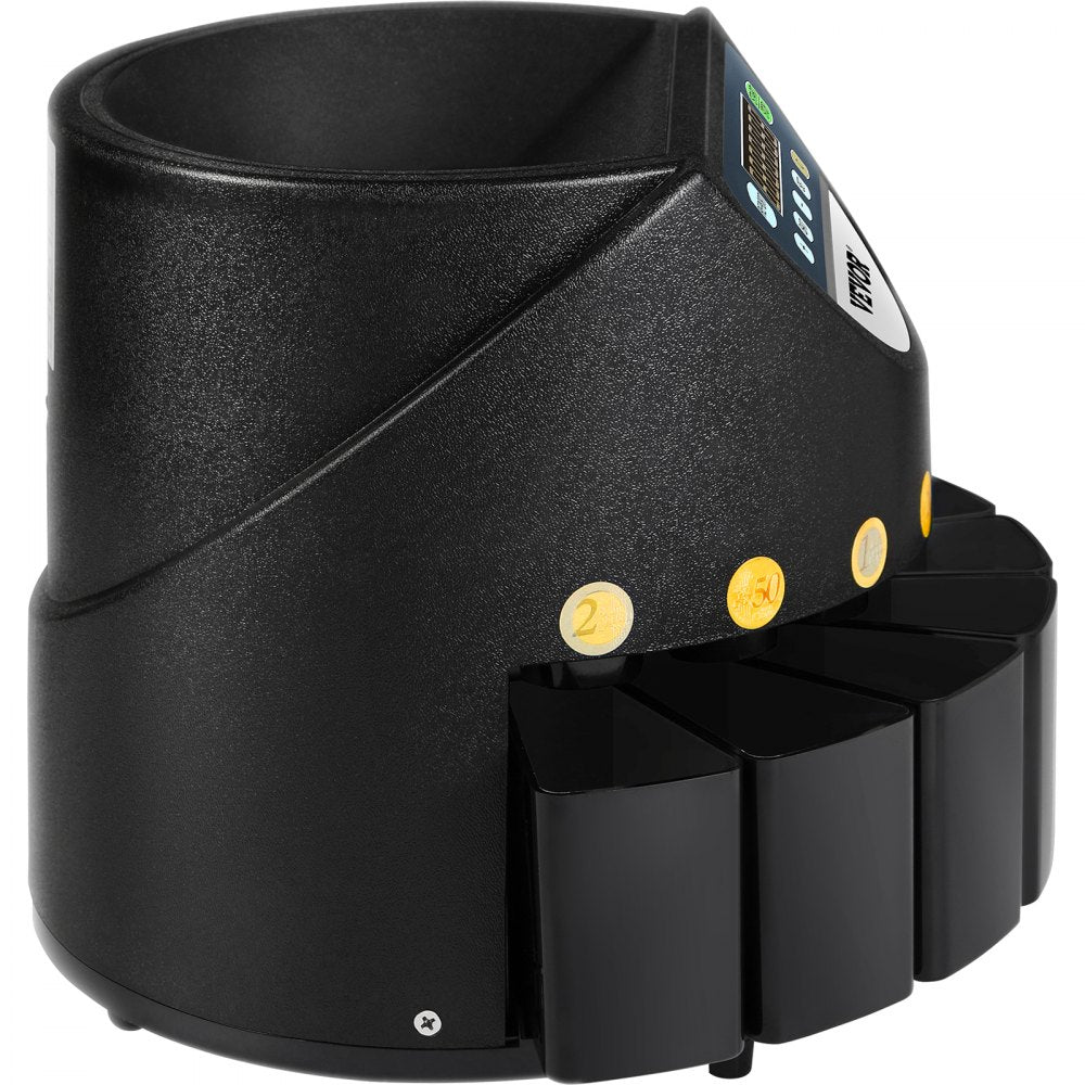 De muntenteller is een professionele elektronische muntteller die in alle commerciële handel en verkoop kan worden gebruikt. Het sorteert alle munteenheden van een munteenheid (Euro) in verschillende vakjes en toont de totale telling en de individuele totalen van elke munteenheid.
