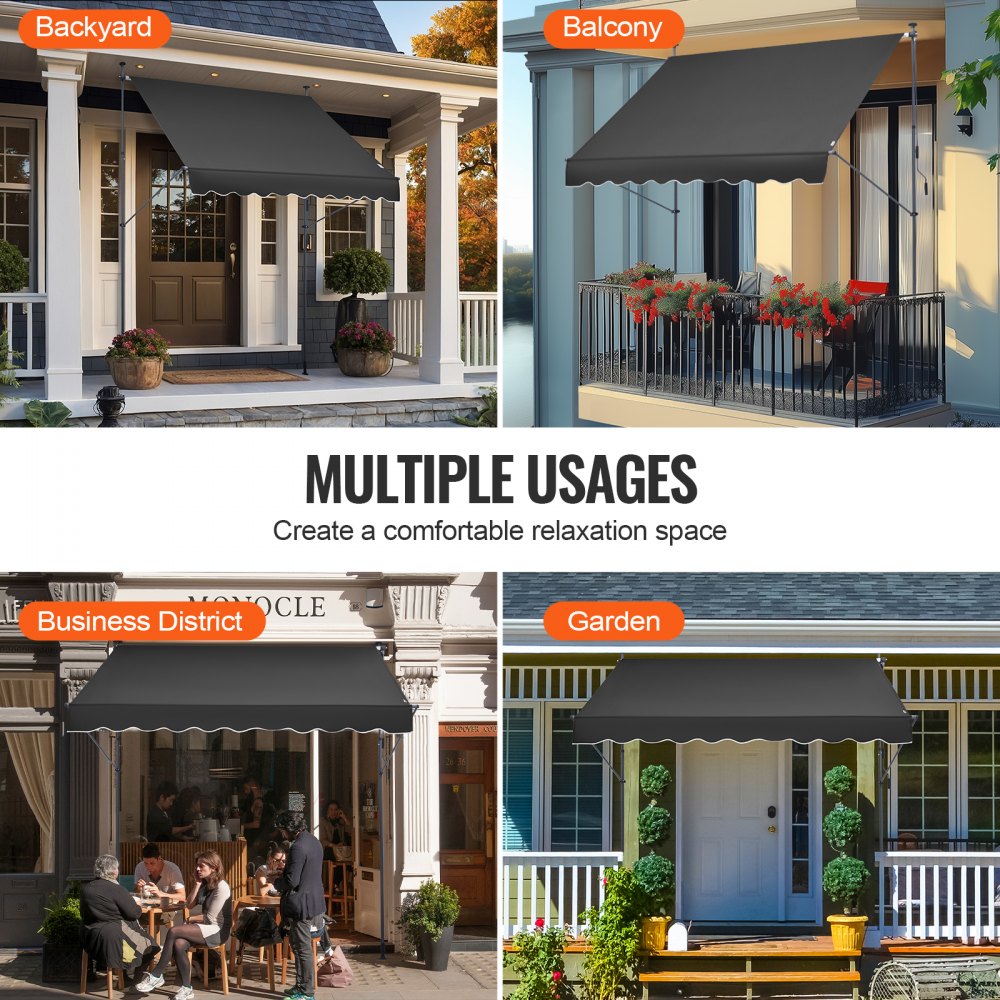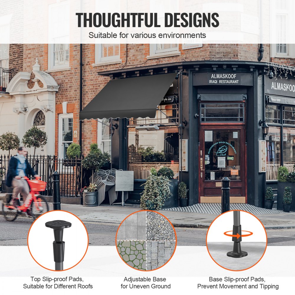 Deze handmatig intrekbare luifel is voorzien van een draaibare steunpaal en maakt hoogteverstelling mogelijk voor verschillende deur- en raamformaten, waardoor de veelzijdigheid van terrasoverkappingen wordt vergroot.