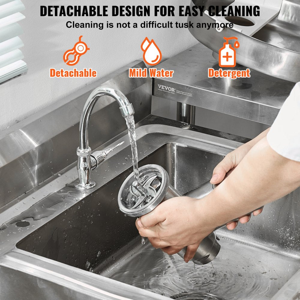 De vleesmolen met een opening van 22 # is uitgerust met een hoogefficiënte motor van puur koper van 750 W die 6,35 kg vlees per minuut kan malen. Het is gemaakt van roestvrij staal, robuust en duurzaam. Het SUS420 mes kan diverse soorten vlees hakken.