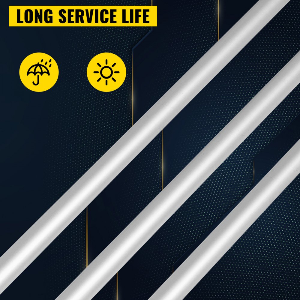 Lengte: 16 ft / 4,3 m (in totaal); Buisdiameter: 0,98 in / 25 mm; Buiswanddikte: 0,05 in / 1,2 mm. Elke verenvlaggenbuiskit bevat 5 buizen en 1 bevestigingsstang.