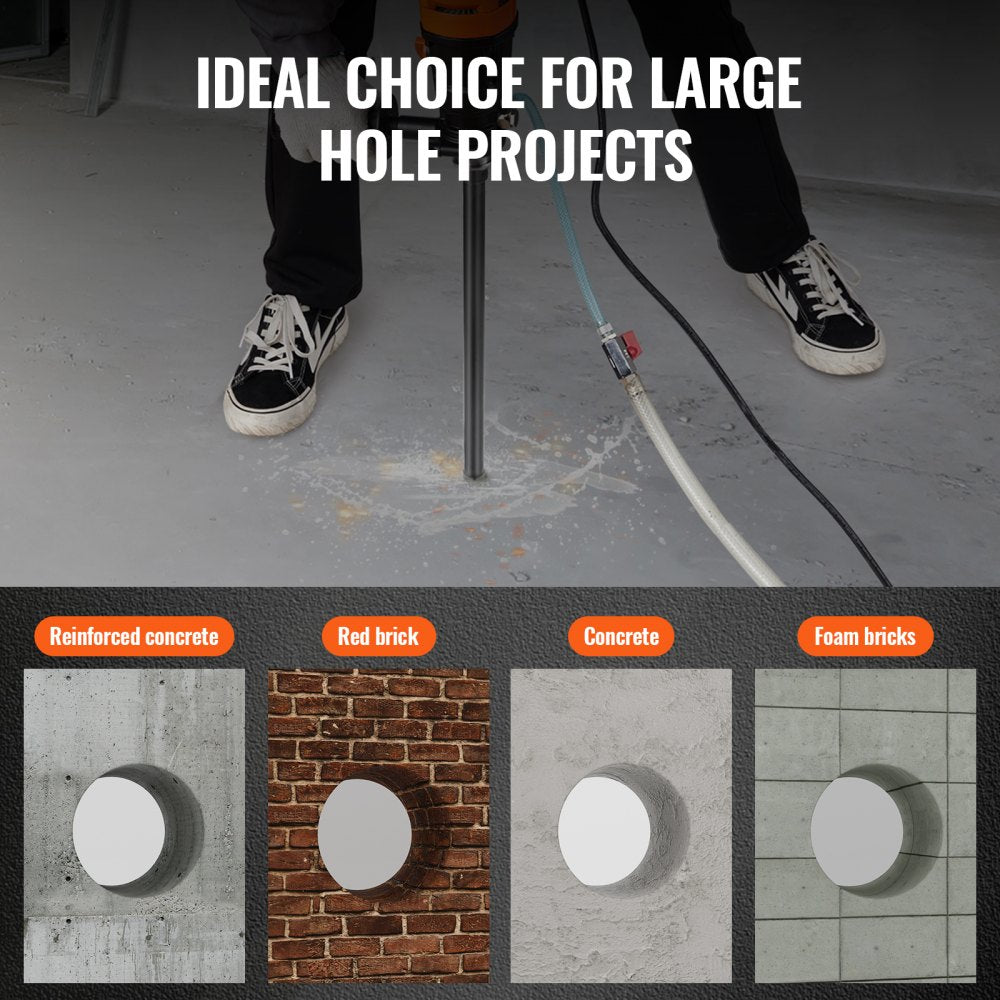 De natboor maakt schoon en nauwkeurig boren mogelijk in taaie materialen zoals gewapend beton, rode baksteen, beton, schuimsteen en nog veel meer.