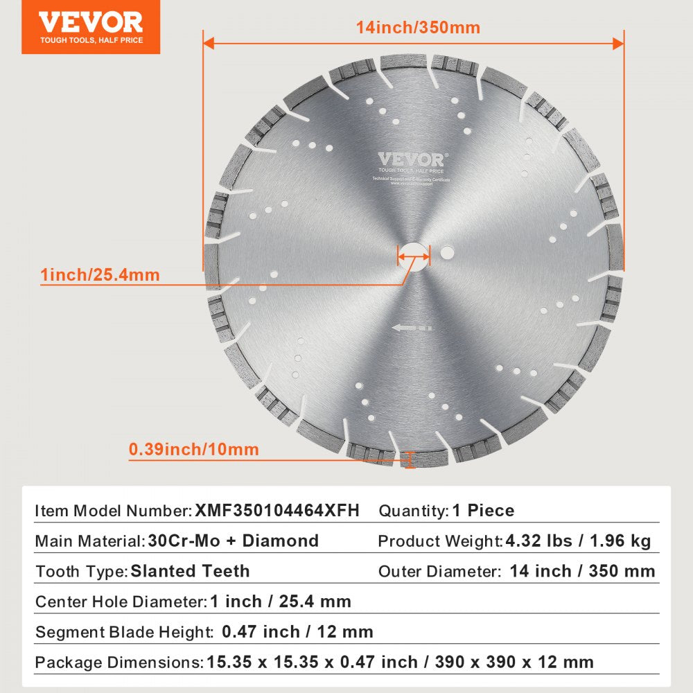 Ons betonzaagblad is gemaakt van een 30Cr-Mo-legering en diamantsegmenten met een hoge dichtheid, die een hoge hardheid, slijtvastheid en langdurige scherpte bieden voor een professionele zaagervaring.