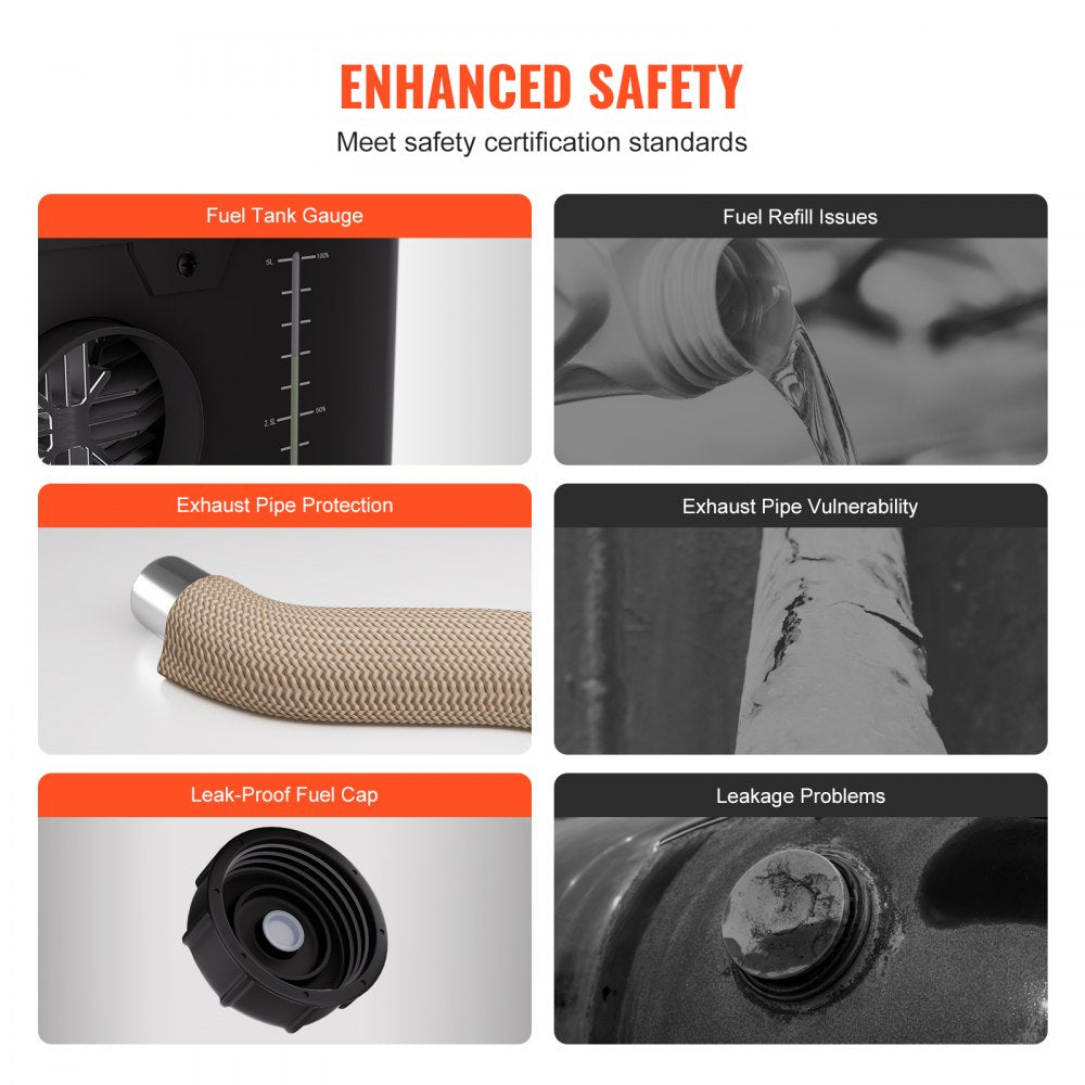 Naast bescherming tegen oververhitting beschikt deze dieselautoverwarming over een brandstofniveau-indicator en een lekvrije tankdop - allemaal verbeteringen die de veiligheid bij langdurig gebruik vergroten.
