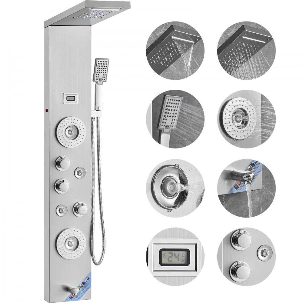 VEVOR Douchepaneelsysteem, 6 douchemodi, LED en display Douchepaneeltoren, Regenval, Waterval, 4 Lichaamsmassagejets, Baduitloop, Handdouche, 150 cm slang, Wandgemonteerde doucheset