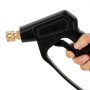• Brede compatibiliteit: het waterdrukpistool is veelzijdig en kan worden gebruikt voor het reinigen van voertuigen, ramen, opritten en gevelbeplating. Het is compatibel met 1/4" uitlaatsnelkoppelingen, M22-15mm, M22-14mm en 3/8" snelinlaatconnectoren, waardoor het geschikt is voor gebruik met de meeste hogedrukreinigers.