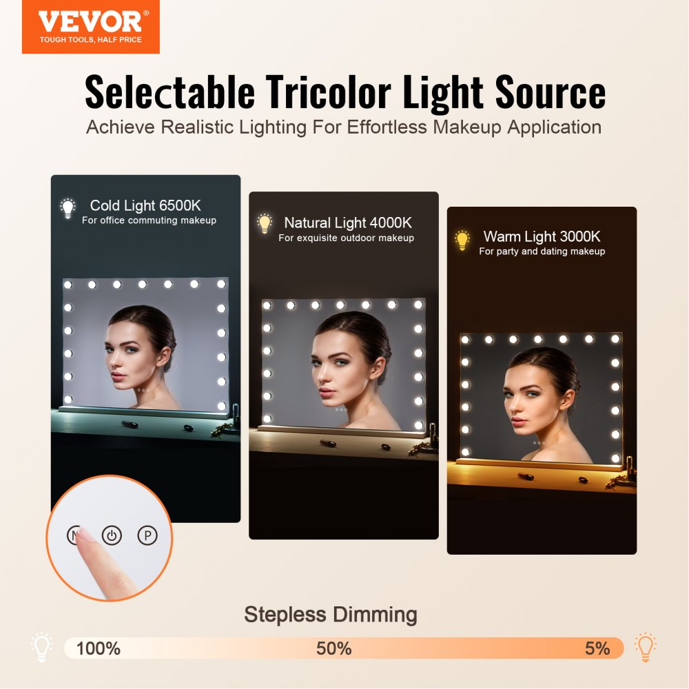 Uitgerust met een 5x vergrotende lens en een touchpad met instelbare helderheid, kunt u de juiste kleurtemperatuur kiezen, zodat u eenvoudig elk detail kunt vastleggen en een prachtige make-uplook kunt creëren.