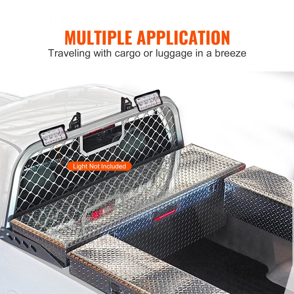 VEVOR Hoofdpijnrek Aluminium 136 kg Gewichtscapaciteit Truck Mount Truckbed, 2057,4 x 660,4 x 152,4 mm Past op Truck Black Truck Headache Rack Boren vereist