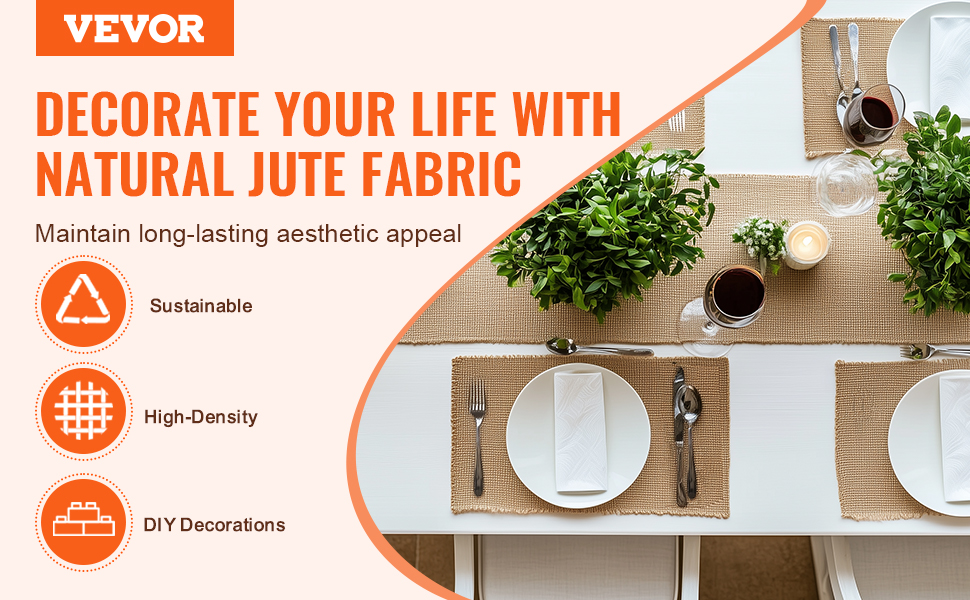 VEVOR jute stof jute decoratieve stof 1016 mm x 9,1 m voor ambachtelijke planten