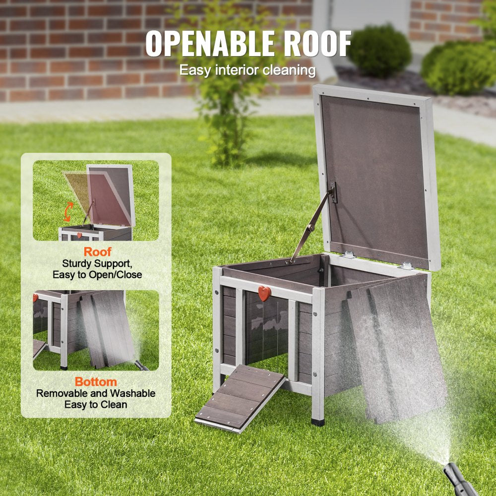 Dit buitenkattenhuis is gemaakt van hoogwaardig cederhout en afgewerkt met verf op waterbasis. Het biedt meerlaagse bescherming die corrosiebestendig is. Vier waterdichte voetzolen verbeteren de waterdichtheid.