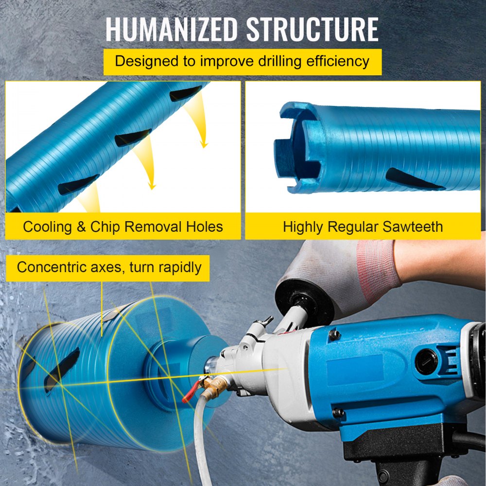 De kernboor is gemaakt van een complexe aluminiumlegering, geselecteerde diamanttanden en hoogfrequente lastechniek en zorgt voor stabiliteit en roestvrijheid.